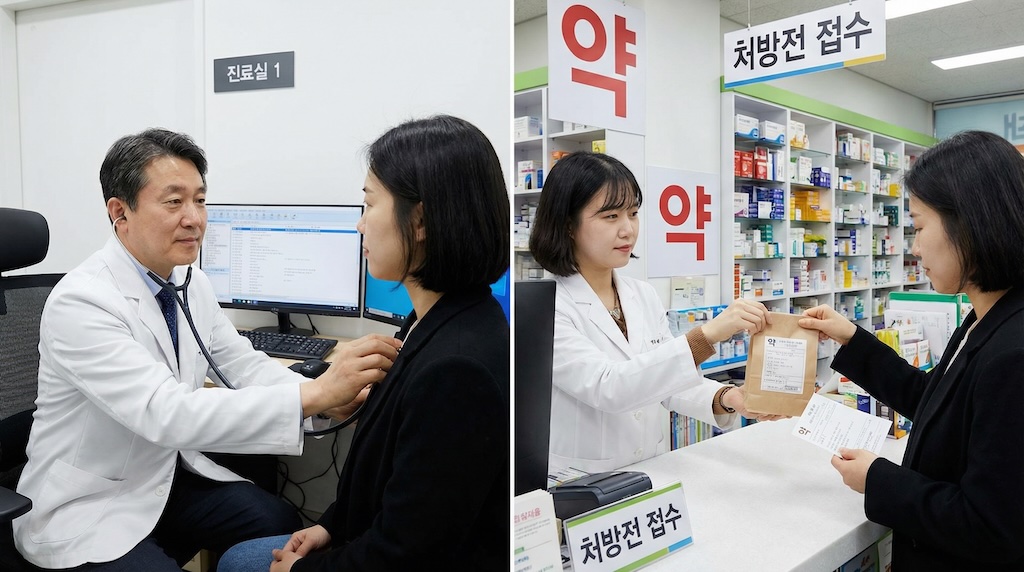 💡 한국은 병원과 약국이 분리되어 있어요.